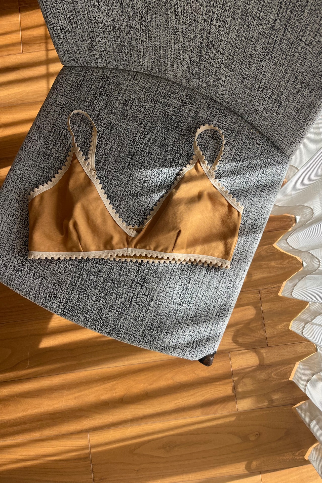TRIANGOLOはバストを優しくホールドしながら綺麗に包み込んでくれる、ホックを使用しないストレスフリーな着心地。